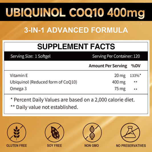 CoQ10 Ubiquinol 400mg, High Absorption Coenzyme Q10 120 Count