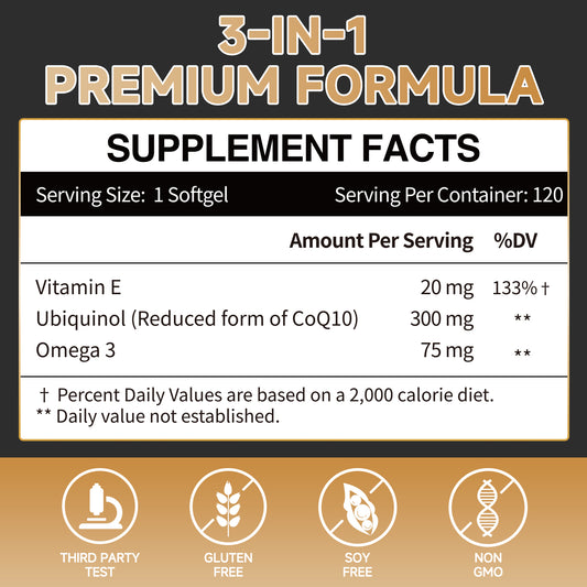 CoQ10 Ubiquinol 200mg, High Absorption Coenzyme Q10 120 Count