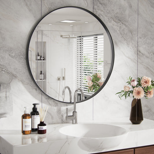 PAIHOME Round Decorative Wall Mirror with Metal Frame, Wall Mounted Vanity Mirror,Modern Bathroom Circle Mirrors