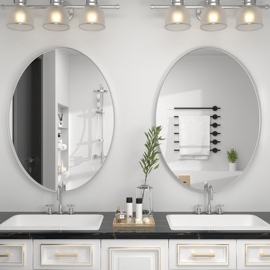 Oval Bathroom Mirror, Silver Vanity Mirror Wall Mounted - PAIHOME