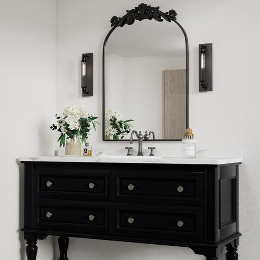 PAIHOME Vintage Arched Wall Mirror with Baroque Carving - Thin Frame Antique Mirror for Living Room, Hallway, and Bathroom Decor