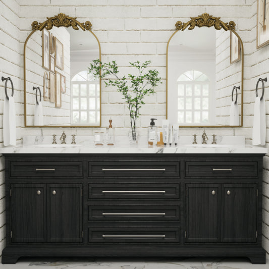 PAIHOME Arched Antique Mirror, Vintage Wall Mirror for Bathroom, Vanity Gold Wall Decor with Top Carving