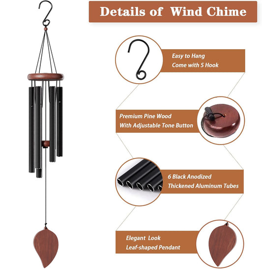PAIHOME Aluminium Wind Chimes for Garden, Outdoor Windbell with Relaxing Sounds for Patio, Porch, Yard. Deep Tone Wood Hanging Decoration Wind Catcher