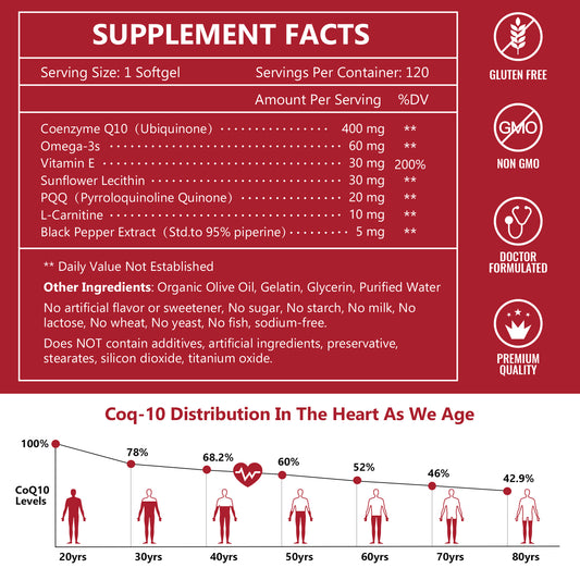 Nature Target CoQ10-400mg softgels+PQQ+Omega-3s+L-Carnitine+BioPerine, High Absorption, Heart/Brain/Immune/Energy-120 Servings