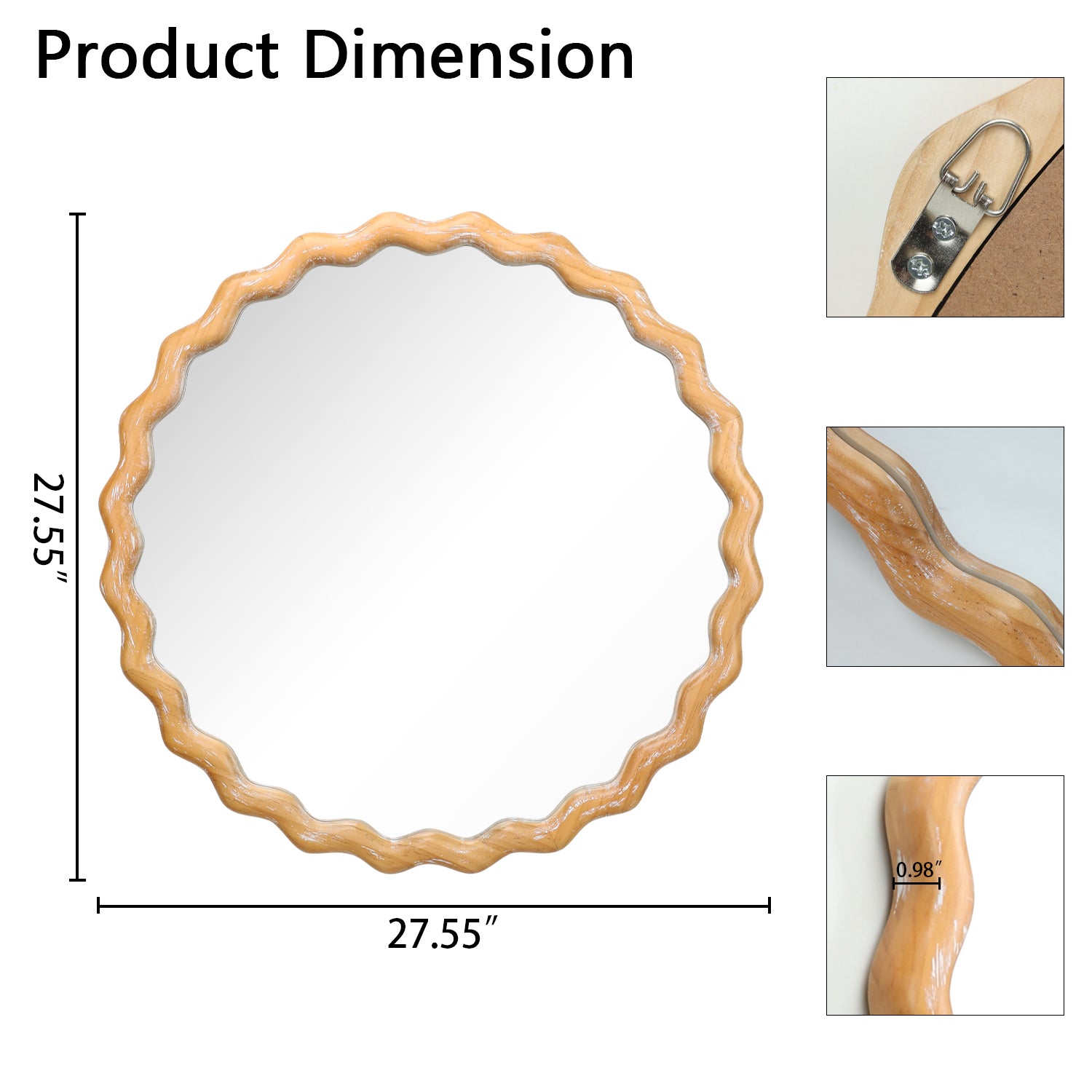 27.5" Round Wavy Bathroom Wall Mirror with Whitewash Edge, Wooden Farmhouse Circle Vanity Mirror - PAIHOME