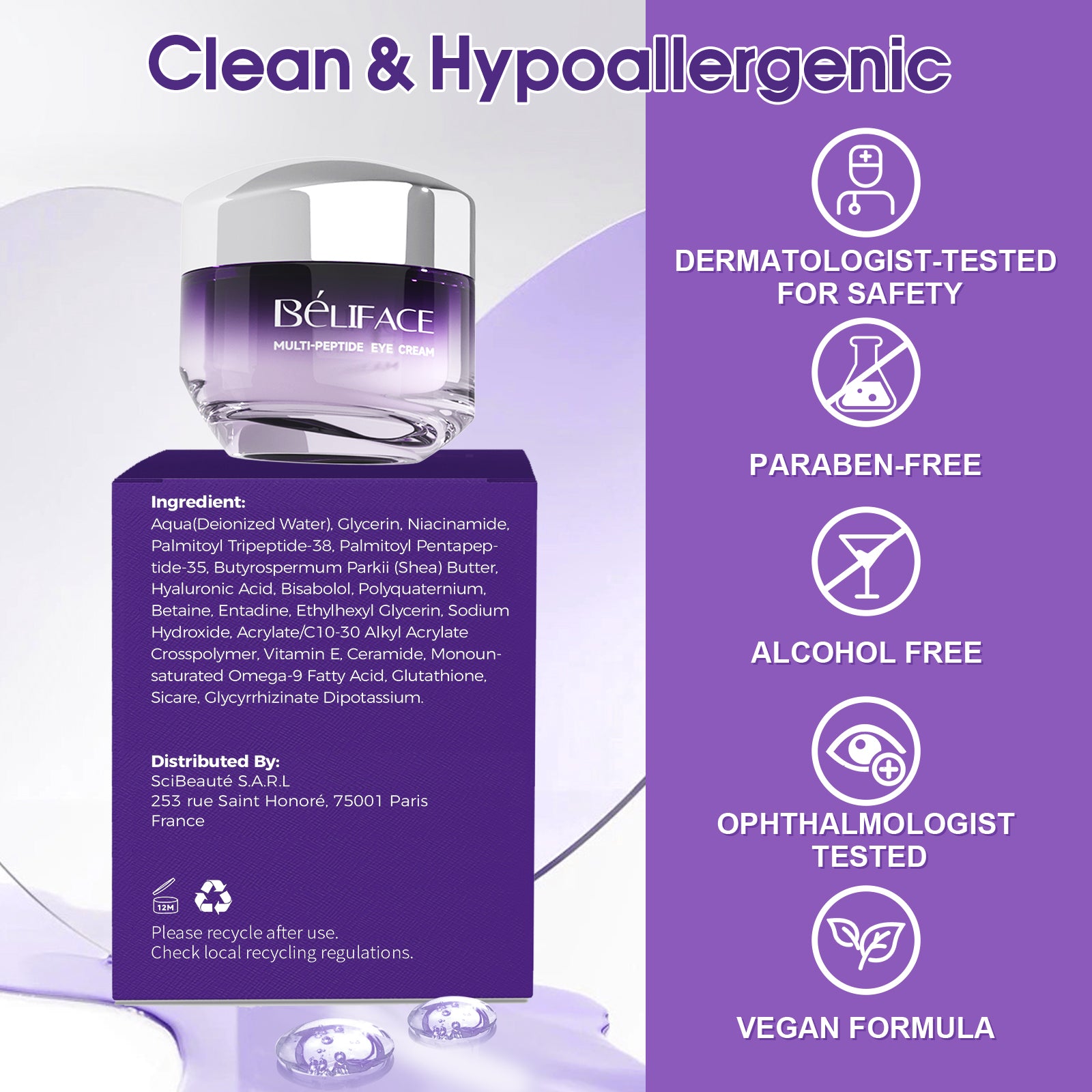 Beliface Anti-Aging Eye Cream: Reduce Wrinkles,Fine Lines,Dark Circles,Brighten—Peptides,Hyaluronic Acid,Niacinamide—Paraben-Free—1.0oz(30g)