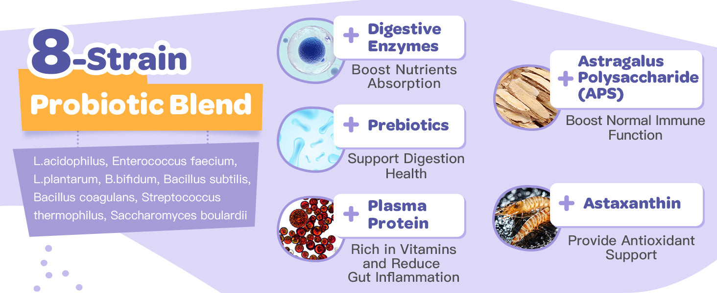 Nature Target Dog Probiotics delivers comprehensive digestive support with 6 billion CFU per scoop, combining probiotics, prebiotics, and digestive enzymes in one powerful formula. This 90-scoop supply works to restore healthy gut flora, promoting optimal digestion and nutrient absorption in dogs. The synergistic blend of beneficial bacteria and enzyme support helps alleviate common digestive issues, including occasional diarrhea and irregularity. Ideal for dogs experiencing digestive upset or those needing preventative gut health maintenance, this science-backed formula supports immune function and overall wellness from the inside out.