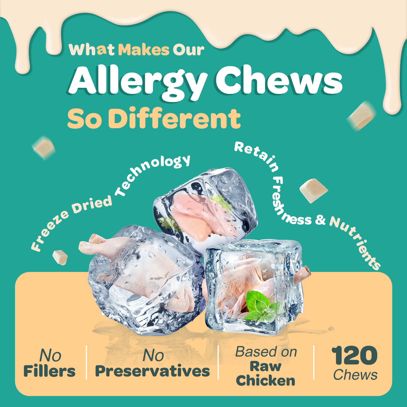 NATURE TARGET Freeze-Dried Allergy Chews for Dogs. Formulated with probiotics, colostrum & Omega 3 to relieve itching, scratching & hot spots, supporting immune & skin health - 120 chews