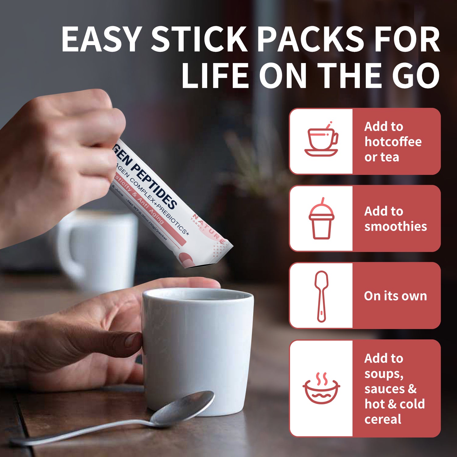NATURE TARGET Multi Collagen Peptides (Types I, II, III, V, X), Hydrolyzed with Prebiotics, Sugar-Free, Supports Skin, Hair, Nail & Joint, Non-GMO - 30packets