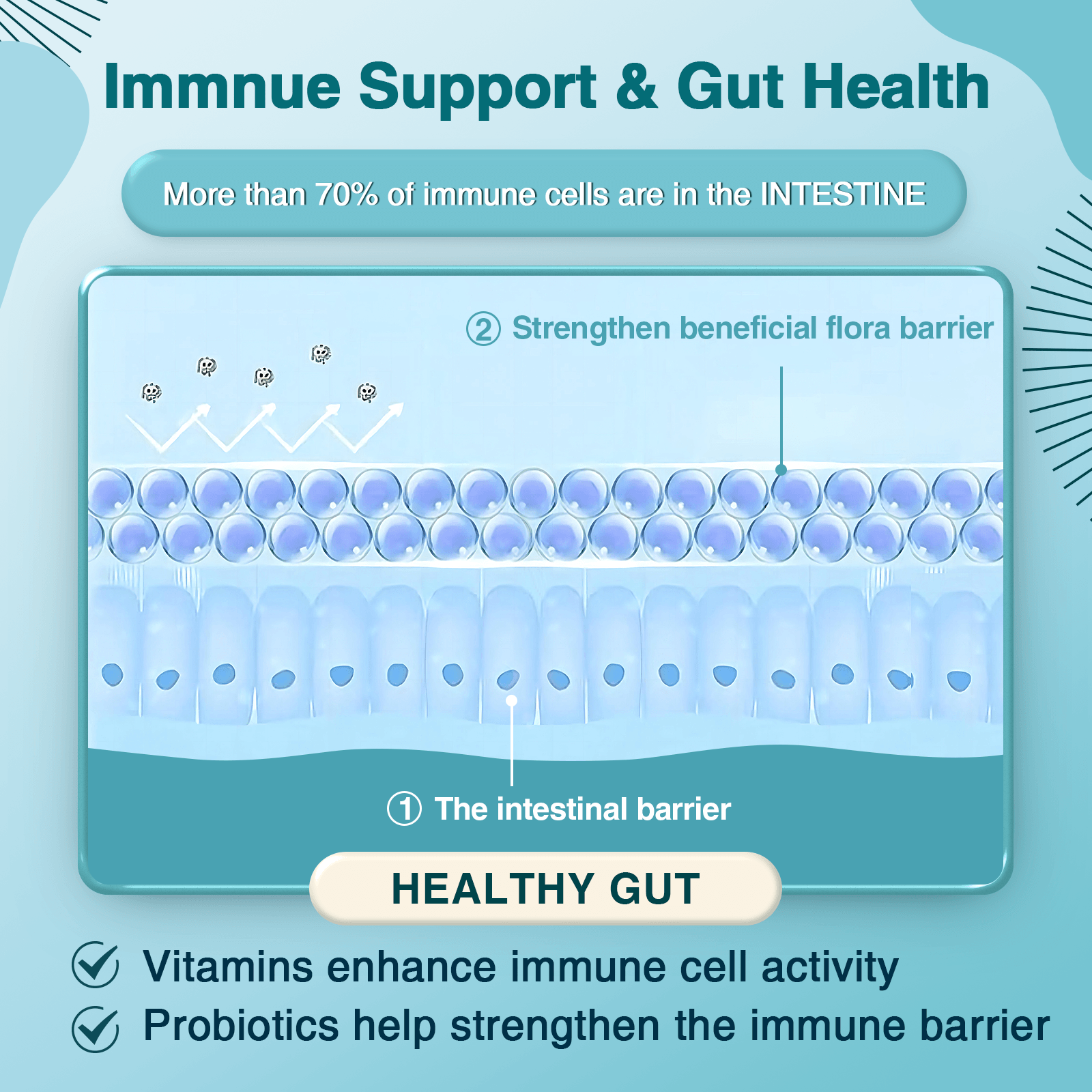 - Immune Health: 70% of your immune system resides in the gut. Women's and men's probiotic combines prebiotics and multivitamins to strengthen intestinal barriers, boost immune cell activity, and nourish beneficial gut flora for digestive-immune synergy.