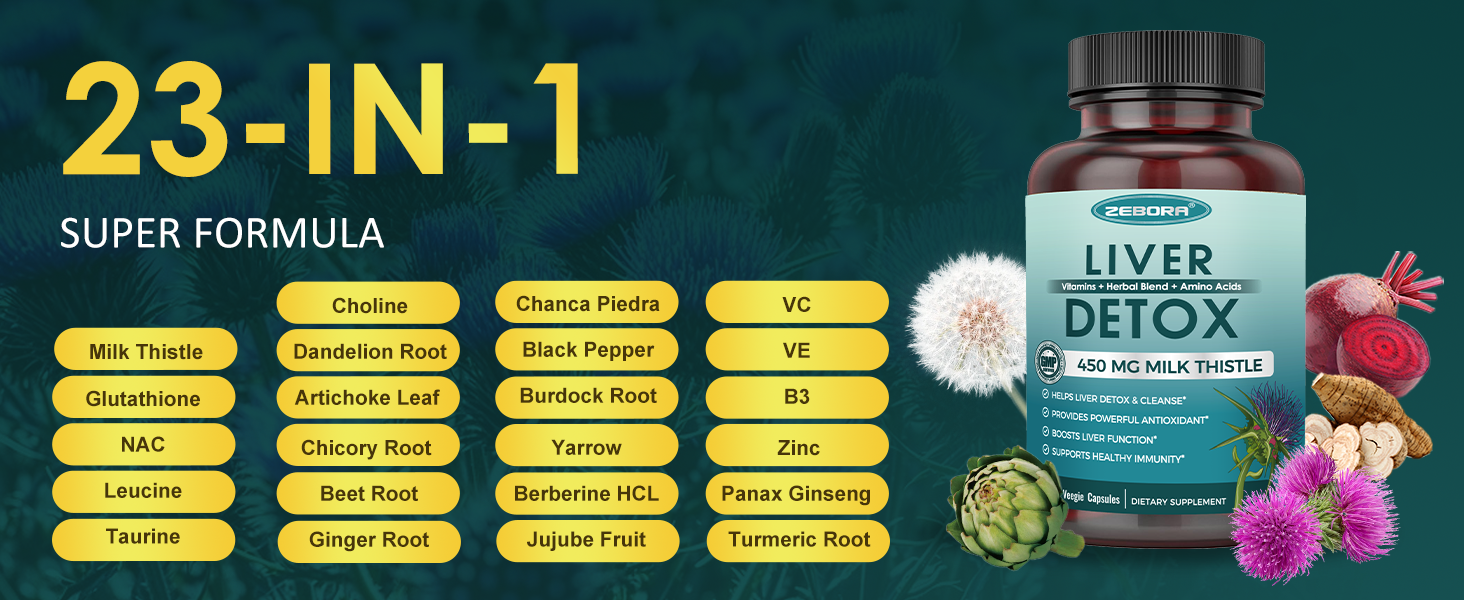 As a liver supplement, ZEBORA Milk Thistle 450 mg capsules contain 80% Silymarin for effective detox and repair. Each bottle comes with 120 veggie capsules, providing essential nutrients for a healthy liver. Trusted by experts, this supplement promotes liver health and overall well-being.
